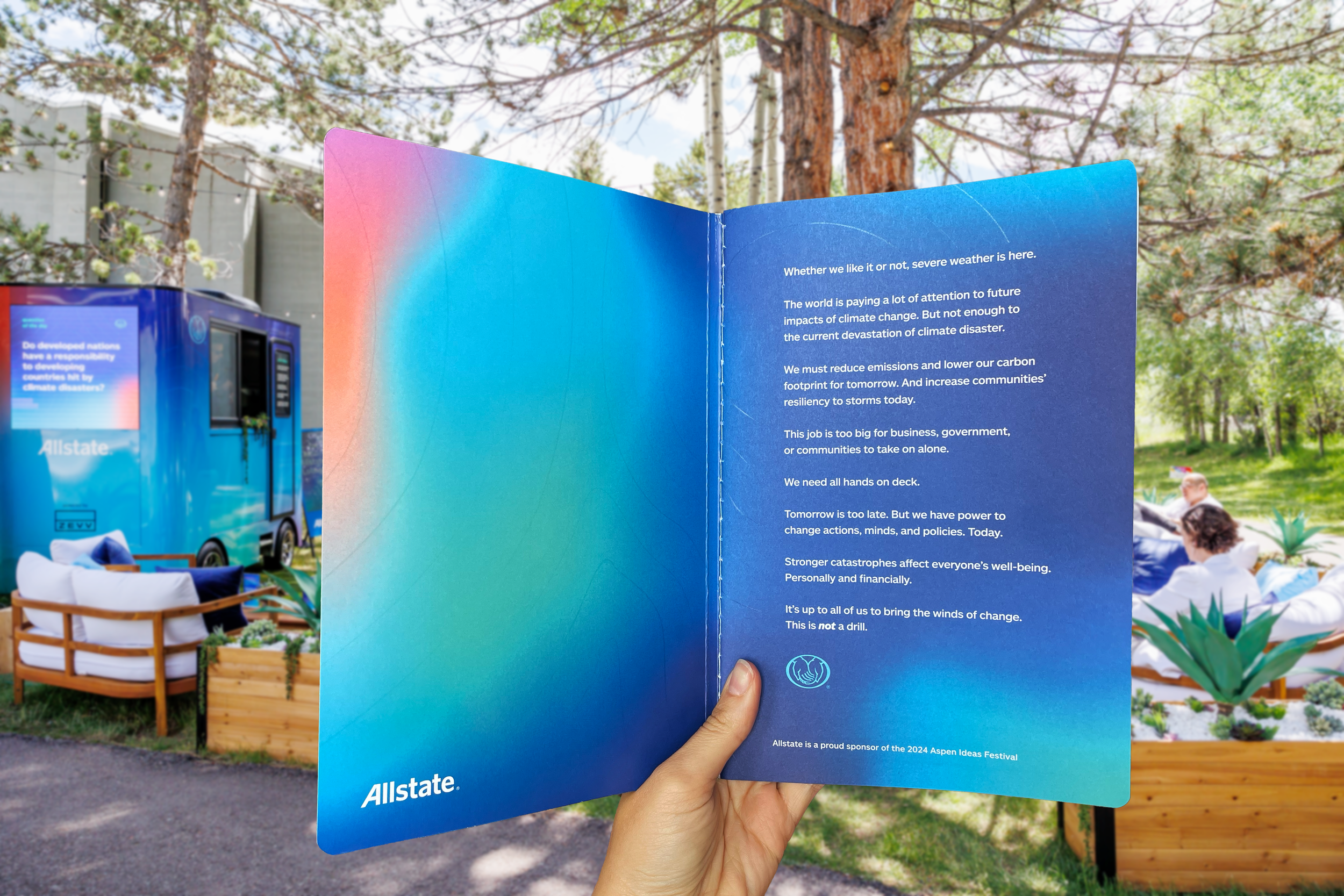 Our campaign, “this is not a drill” provided a sense or urgency for leaders at the festival to not just contemplate, but act. Meanwhile, our visuals used the Allstate color palette to create bright and bold gradients inspired by weather maps with isobars.